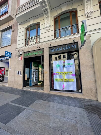 Dirección: Gran Via, 51, Centro, 28013 Madrid. Teléfono: 915 47 26 25 Web: http://www.farmaciagranvia51.com/ Opiniones: Esta farmacia tiene 140 Opiniones